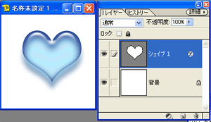 シェイプにレイヤースタイルのプラスチックをかけてみます。 カスタムシェイプツールをクリックして、好きなシェイプを選んで、画面に対角線にクリック&ドラッグしてシェイプを描きます。 描画色は何色でもかまいません。 |