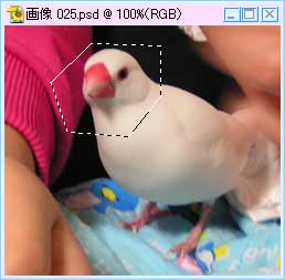 塗り終わったら、他のツールをクリックすれば、修正された選択範囲のできあがり。 今度はちゃんと輪郭に沿って選択できました。 |