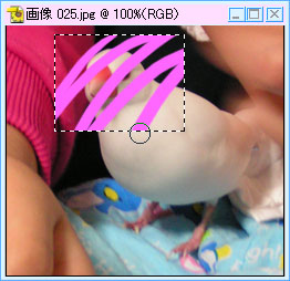 点々で囲まれた範囲にだけ効果をかけたり、描いたりできます。 ブラシをつかっても、この範囲内にしか描けません。 |